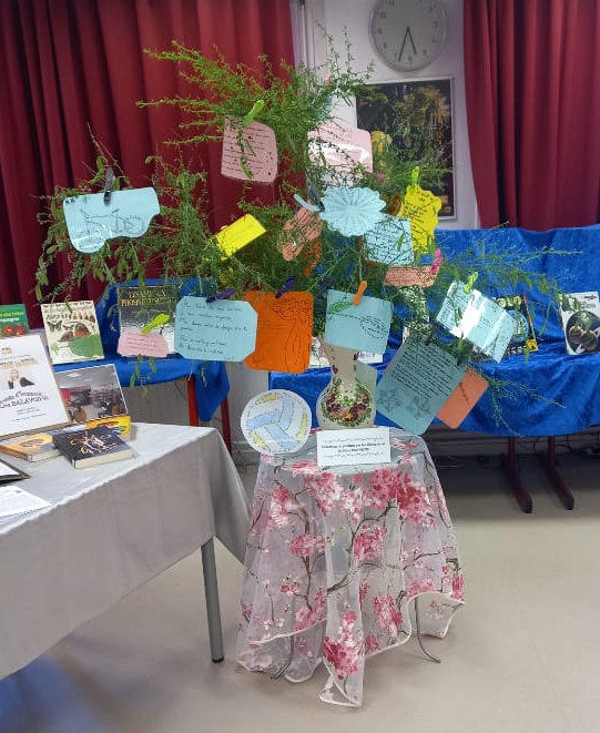 Lors de la journée portes ouvertes nous avons eu le plaisir de découvrir l’arbre de poèmes réalisé par les élèves de 4ème. Professeur de français: Mme Bonnevie